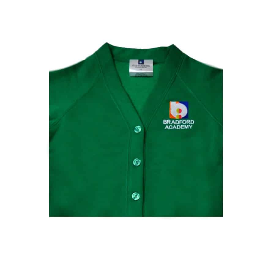 Here we have the Official Bradford Academy Primary School Cardigan. This cardigan is made from a blend of soft reliable fabrics to provide long lasting comfort for your child throughout the busy school day. All our garments come in a wide range of sizes, include the official school logo and come with a proven track record of reliability.