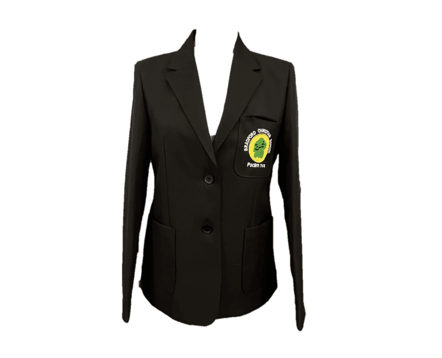 The Official Bradford Christian School Girls Year 6 Blazer. This fully lined blazer has been produced with a blend of fabrics to ensure longevity and comfort for the long days at school. Finished with the school’s emblem embroidered on the chest, this blazer is the perfect centre piece of school uniform.