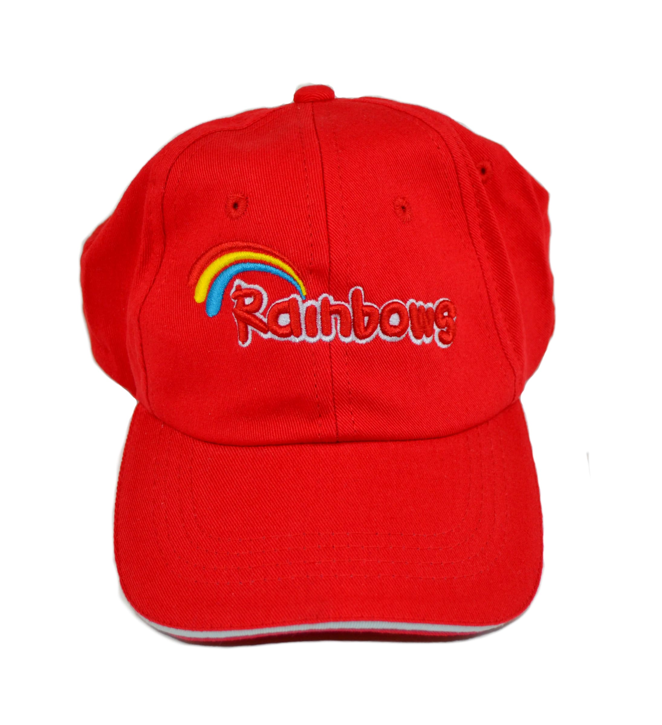 The Official Rainbows Cap. This vibrant red Rainbows baseball cap finishes off the look and is great for hot sunny days!