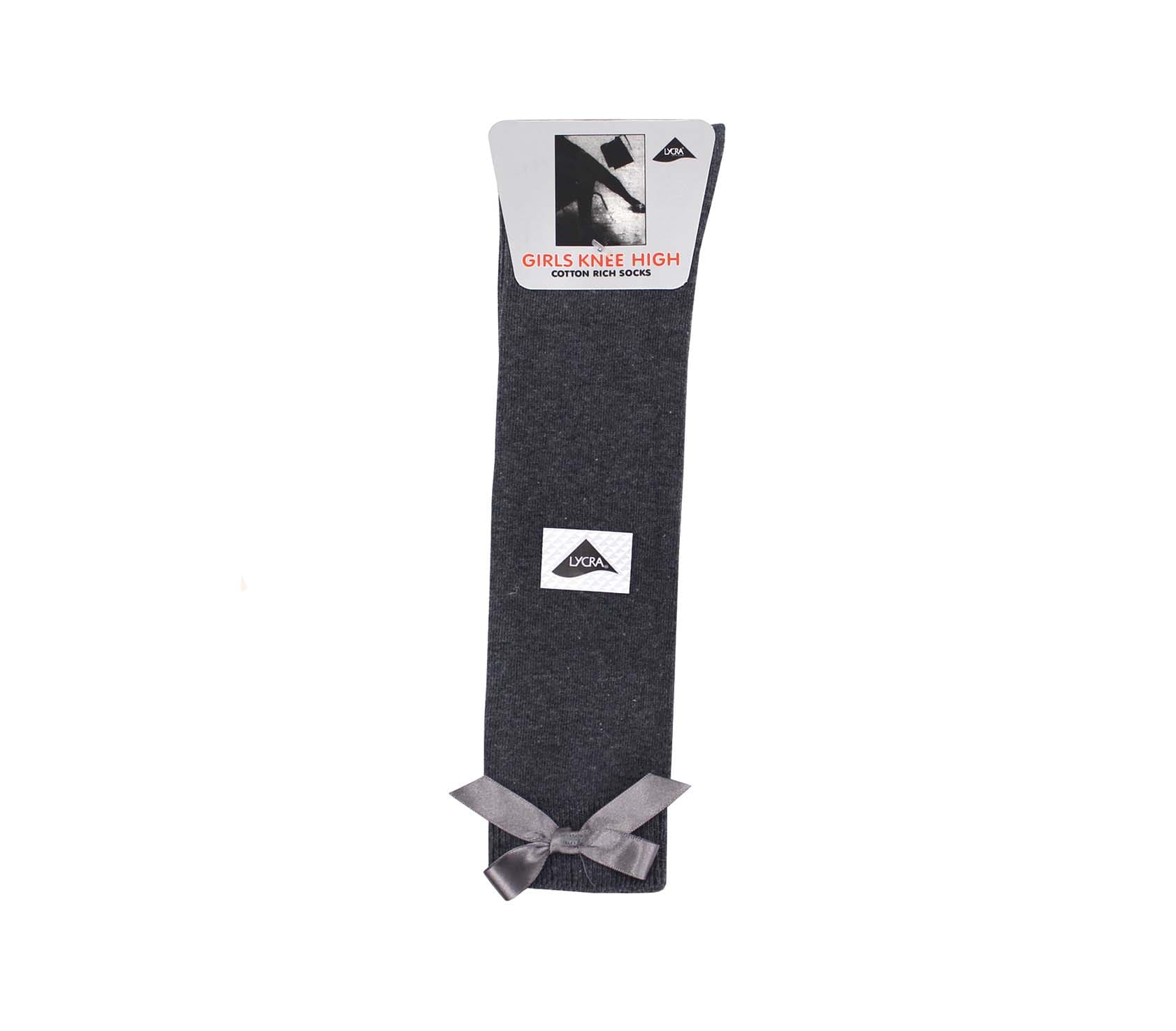 Here we have our Knee High Bow Socks. Made from a durable soft pill fabric that provides excellent performance and comfort for your child throughout the school day. This item is a great staple for any uniform wardrobe.