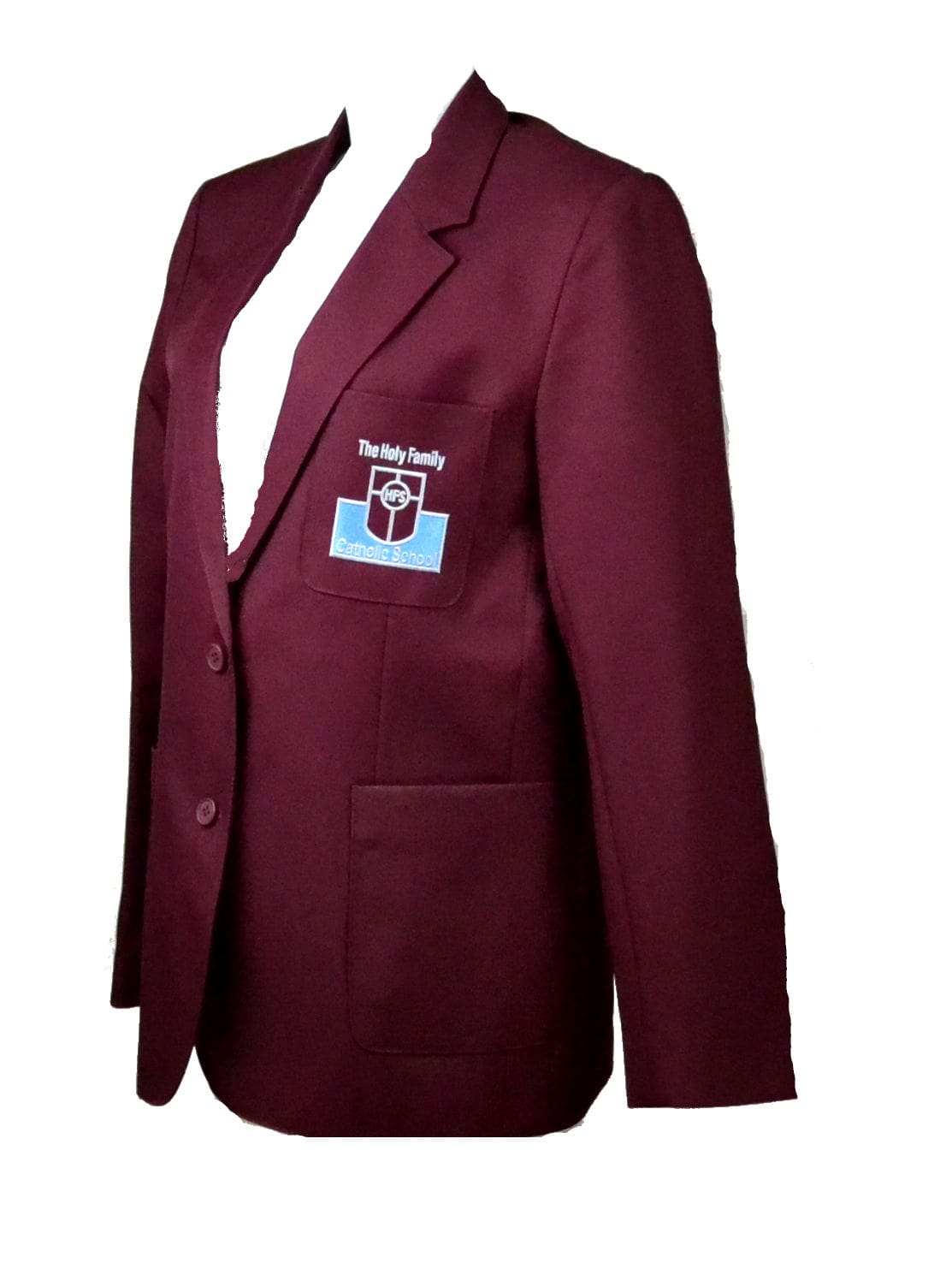 Keep her looking sharp in the Official Holy Family School Blazer. This fully lined blazer has been produced with a blend of fabrics to ensure longevity and comfort for the long days at school. Produced to be the centre piece for the school uniform, this item has been made to match the school’s specifications to ensure the uniformed smart over all look. Finished with the school’s emblem embroidered on the chest to create a smart piece of uniform.
