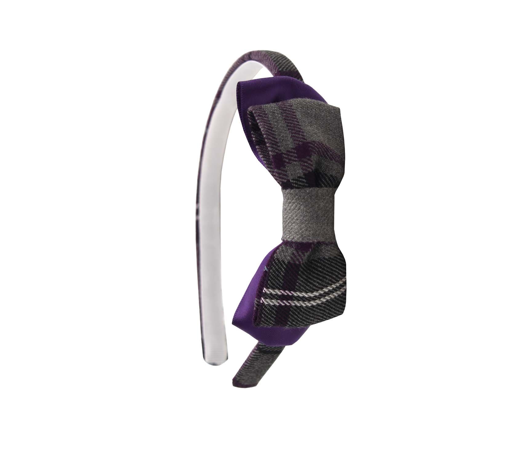 Purple and grey tartan hairband, suitable as a schoolwear accessory.