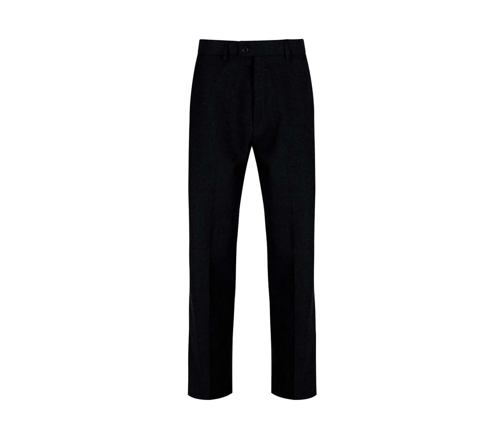 Sturdy Fit Boys Black Trousers. Flat Front Style Trouser with a more generous fit and shorter leg. Internal Waist Adjuster. Fully lined waistband with tailored construction. Side and Back Pockets.