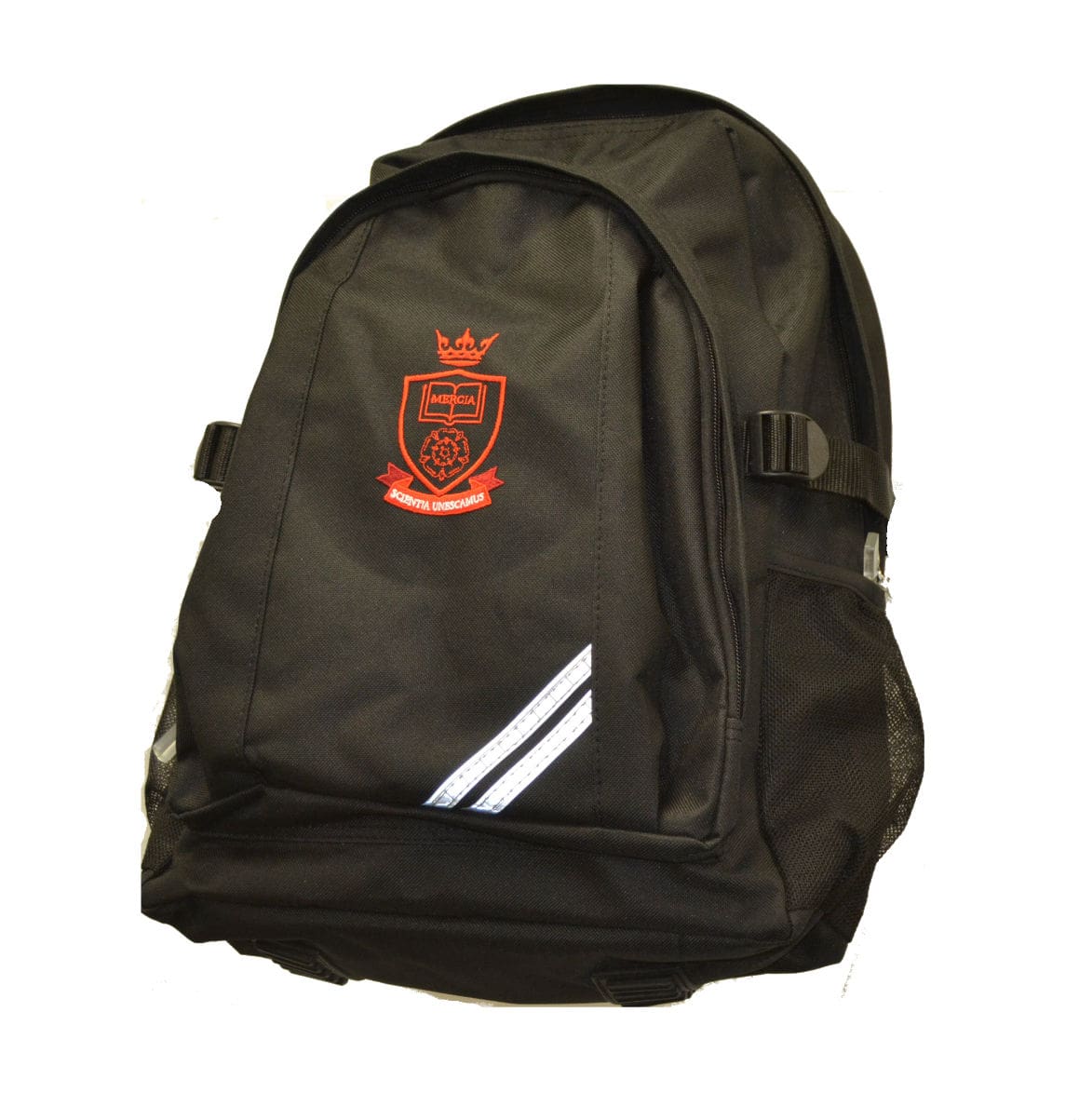 Mercia School Classic Backpack. For carrying all your school essentials. With school badge and hi-viz strips for safety.