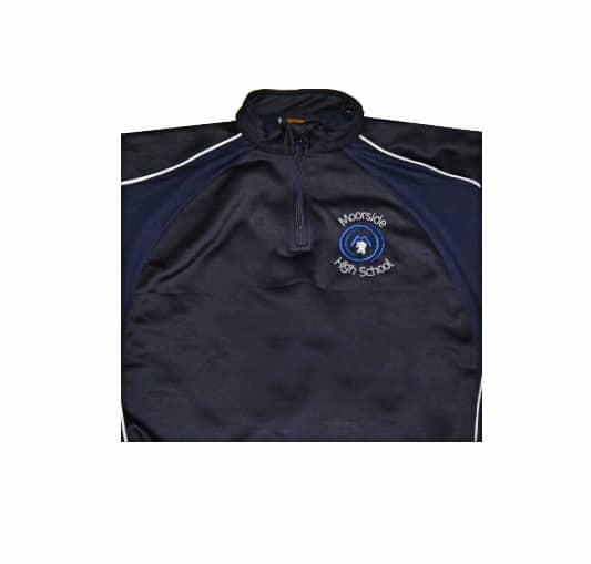 The Official Moorside High 1/4 Zip Training Top. This item of PE Kit will give extra warmth during outdoor PE lessons.