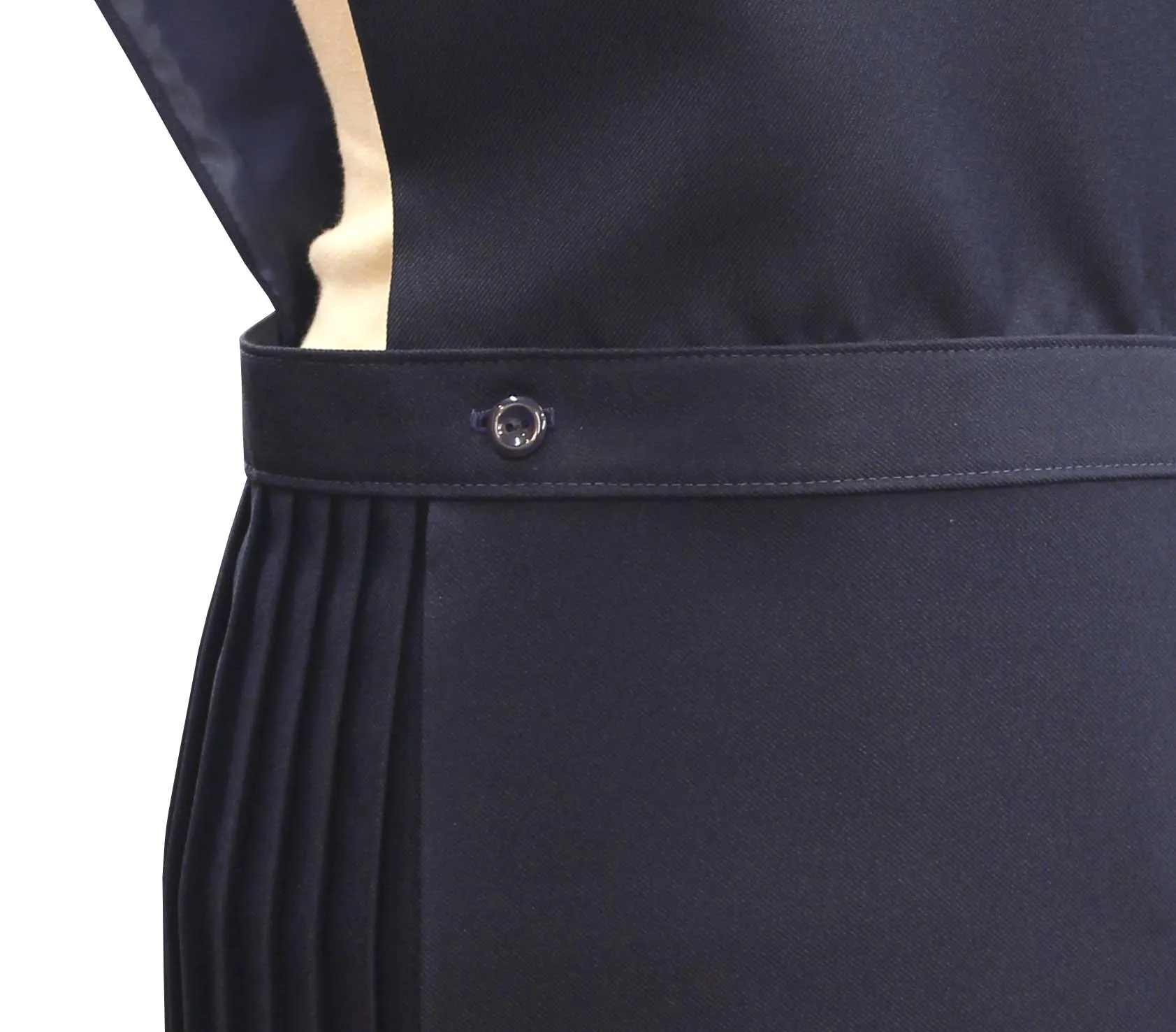 • Permanently pleated wrap over skirt with