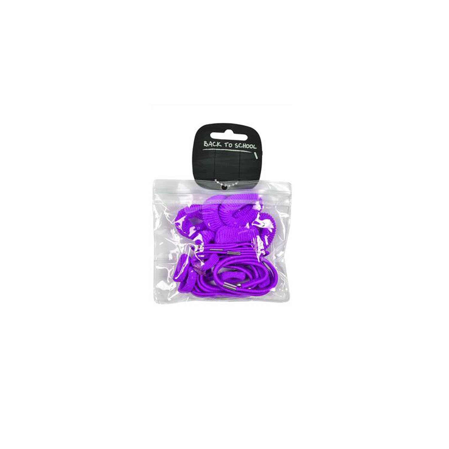 24 Assorted bobbles and ponios in popular school colours in a handy clear plastic wallet