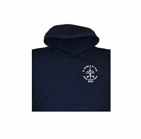 The Official St Peter and St Paul Primary School Physical Education Hooded Sweatshirt. This hoody features a “Kangaroo Pocket” and has been produced with a blend of soft, durable fabrics that are proven to produce a comfortable and long-lasting garment. Finished with the school’s logo embroidered onto the item, this hoody is an excellent choice for keeping out the chill of winter or simply as an additional extra for PE lessons.