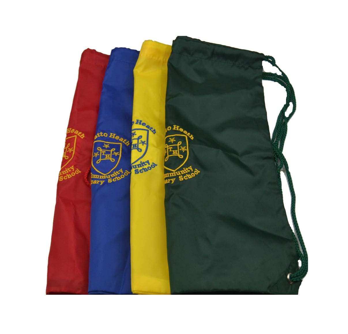 Thatto Heath Primary School PE Bag. Choose your house colour from the drop down menu. Matches other items in the PE Kit.