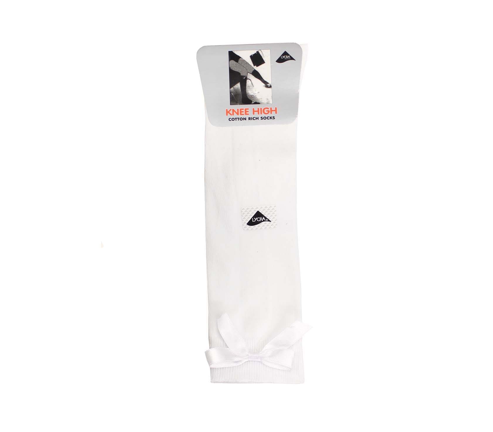 Here we have our White Knee High Bow Socks. Made from a durable soft pill fabric that provides excellent performance and comfort for your child throughout the school day. This item is a great staple for any uniform wardrobe.